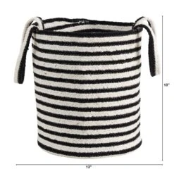 14” Boho Chic Basket Natural Cotton And Jute, Handwoven Stripe With Handles