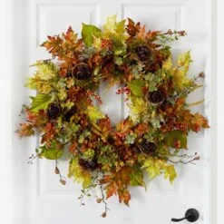 32” Fall Hydrangea, Ranunculus And Maple Leaf Autumn Artificial Wreath
