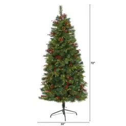 6’ Mixed Pine Artificial Christmas Tree With 250 Clear LED Lights, Pine Cones And Berries