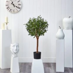 3.5’ Fiddle Leaf Fig Artificial Tree In Gray Planter With Stand