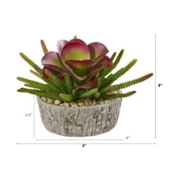 9” Mixed Succulent Artificial Plant In Weathered Oak Planter