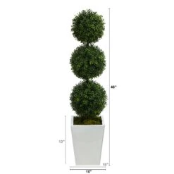 46” Boxwood Triple Ball Topiary Artificial Tree In White Metal Planter (Indoor/Outdoor)