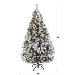 6′ Flocked Vermont Mixed Pine Artificial Christmas Tree With 300 Clear LEDs Lights