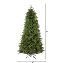 9’ Slim Green Mountain Pine Artificial Christmas Tree With 600 Clear LED Lights