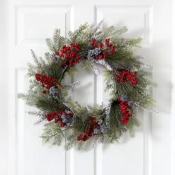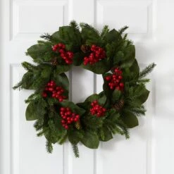 24” Christmas Pine Artificial Wreath With Pine Cones And Ornaments