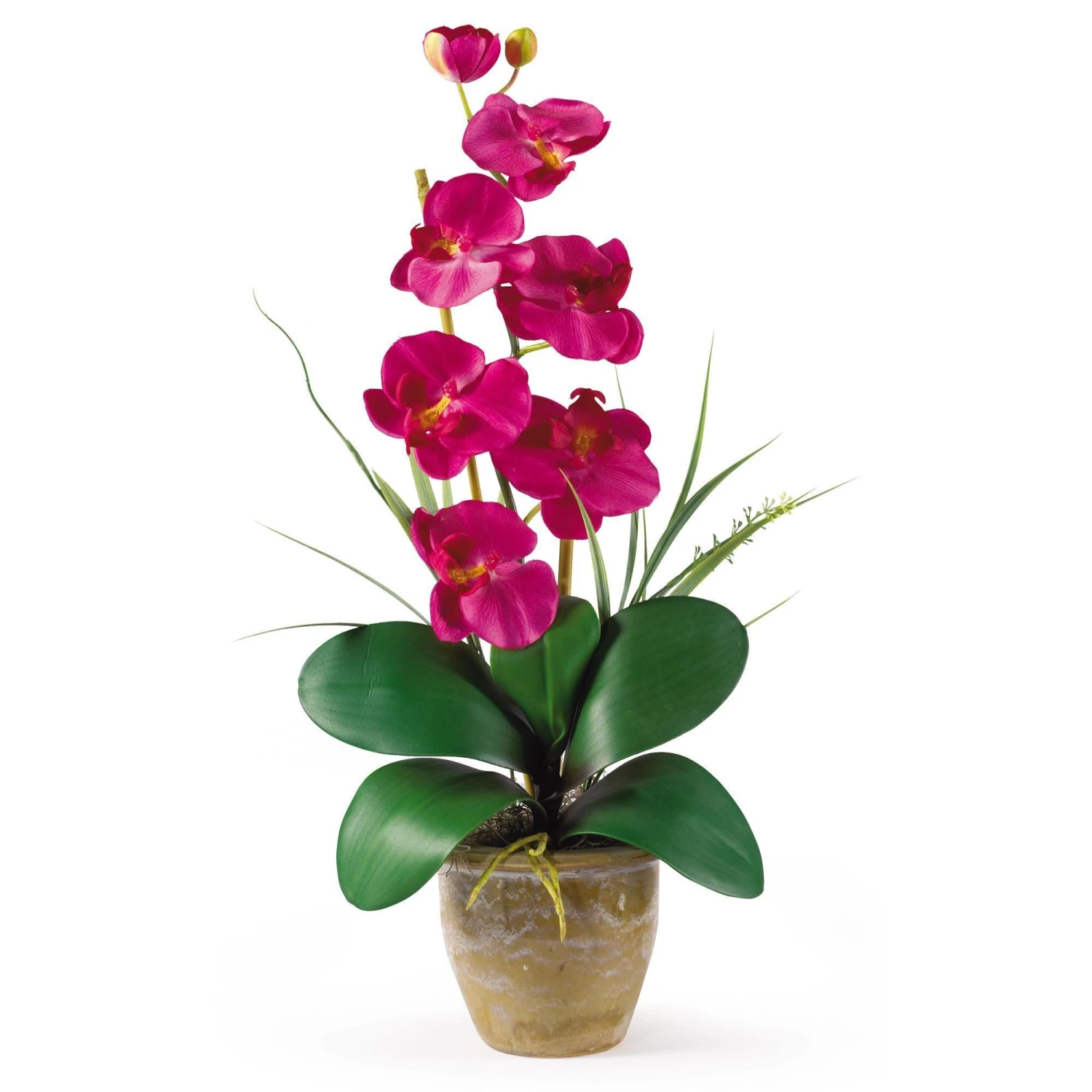 Bursting with color and personality the Phalaenopsis is perhaps the most popular variety of all the orchids. Six lively blooms and two buds are complimented by genuine bamboo, which enhances the silk plant’s authenticity. Featuring nearly natural leaves, moss and roots, this familiar favorite is sure to charm the masses.